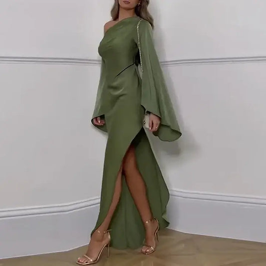Elaine | Elegantes langes Kleid mit asymmetrischem Ausschnitt