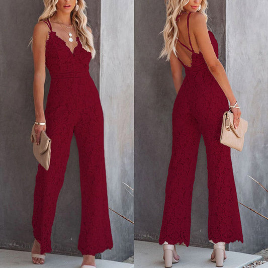 Junie | Jumpsuit mit floraler Spitze und weiten Beinen