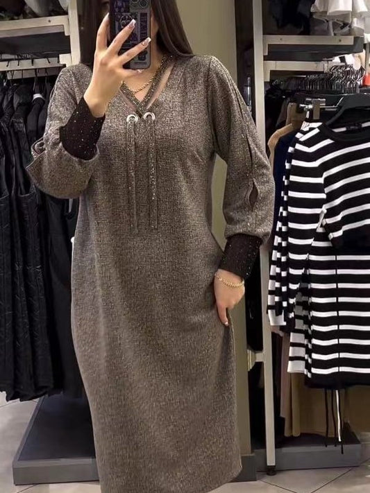 Mianna | Stylisches langärmeliges Kleid mit Kordelzug am Dekolleté