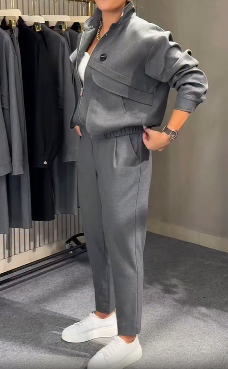Das Lorelei | Stehkragen-Set mit Oberteil und Leggings vereint weiches Material mit modernem Design. Perfekt für Freizeit, Homeoffice oder entspannte Aktivitäten – bequem, stylisch und vielseitig kombinierbar.