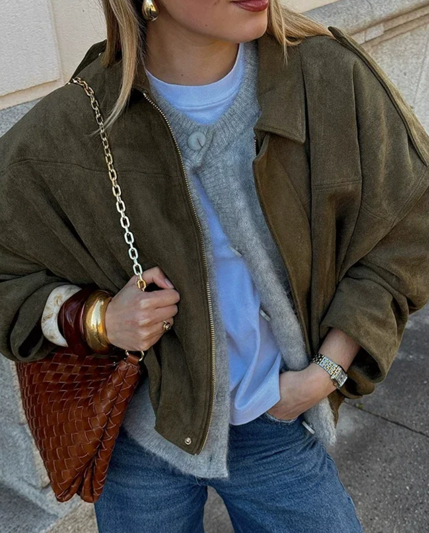 Erlebe Komfort und Stil in perfekter Harmonie mit der Afrela | Locker sitzenden Wildlederjacke für Damen – jetzt bestellen und deinem Look einen Hauch von Luxus verleihen!