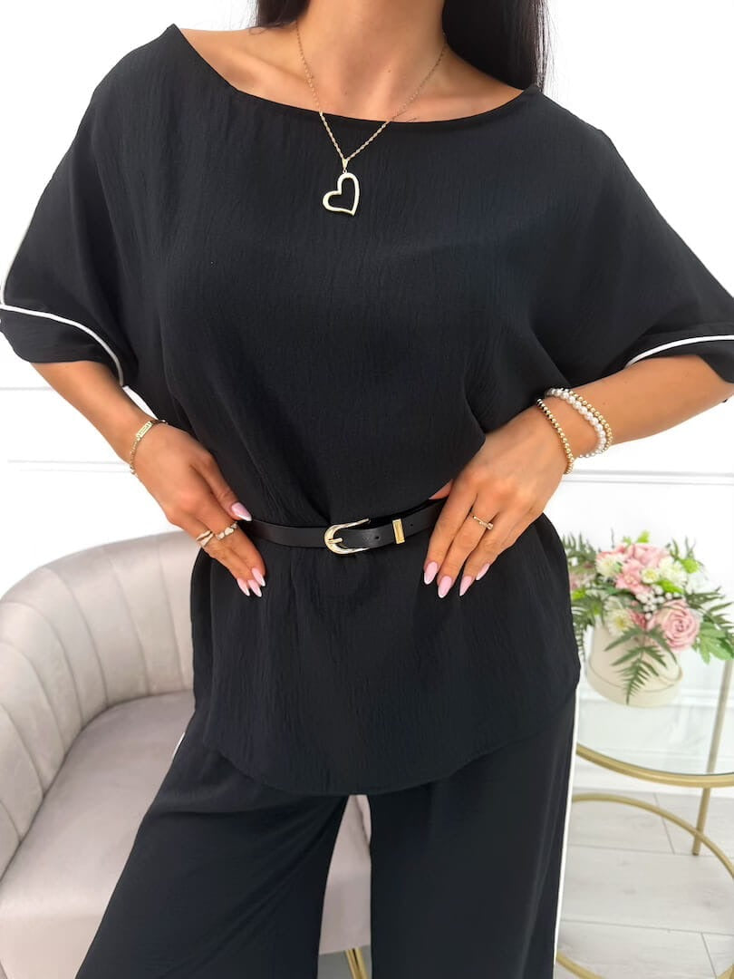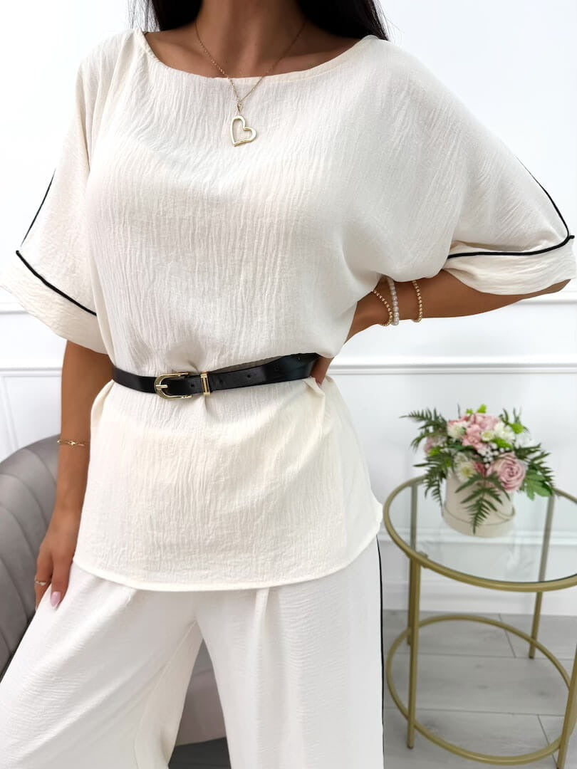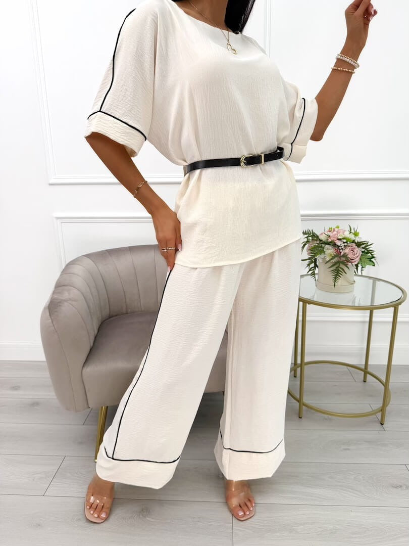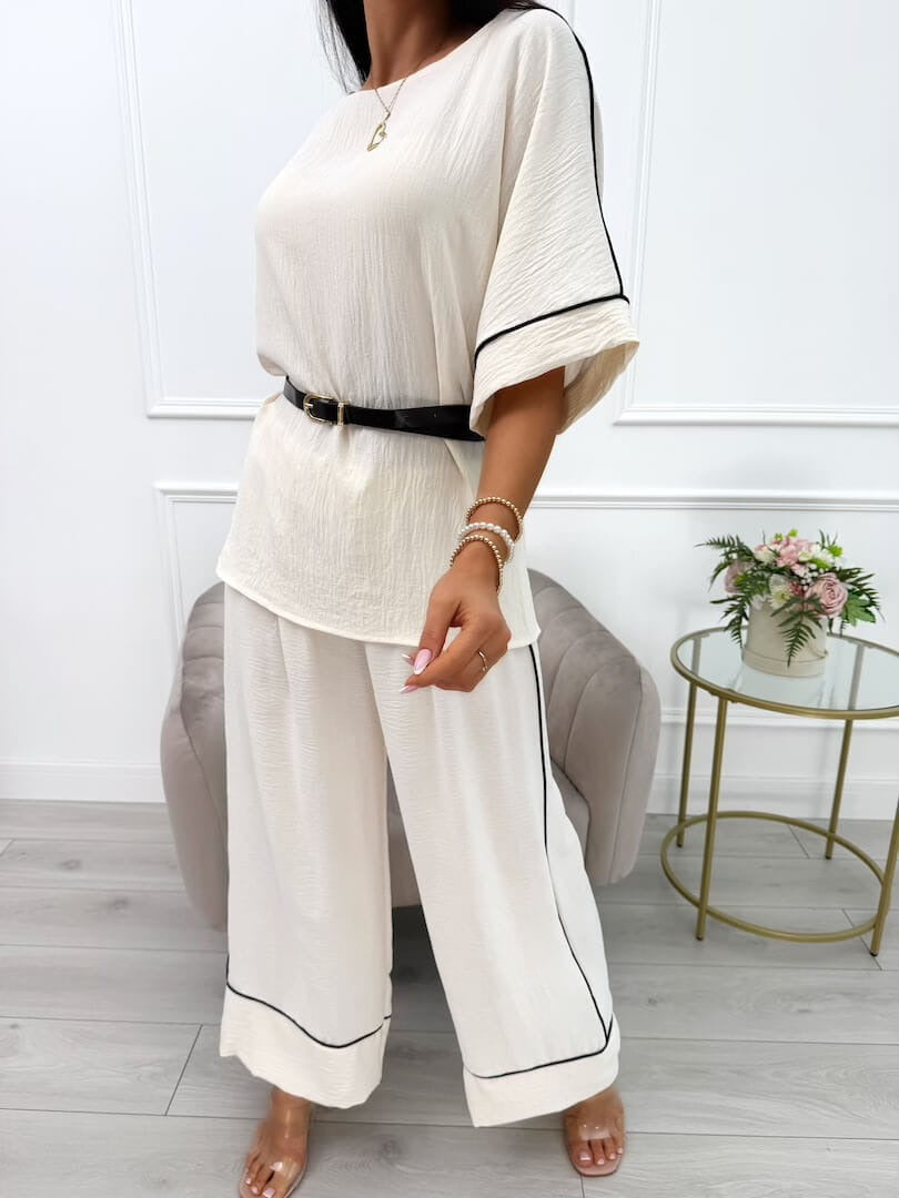 Das Amyra | modische Set mit Gürtel für Damen vereint trendiges Design mit praktischen Details. Der Gürtel sorgt für eine betonte Taille und verleiht dem Set eine feminine Silhouette, während das hochwertige Material für einen komfortablen Tragekomfort sorgt – ideal für den Alltag oder besondere Anlässe.