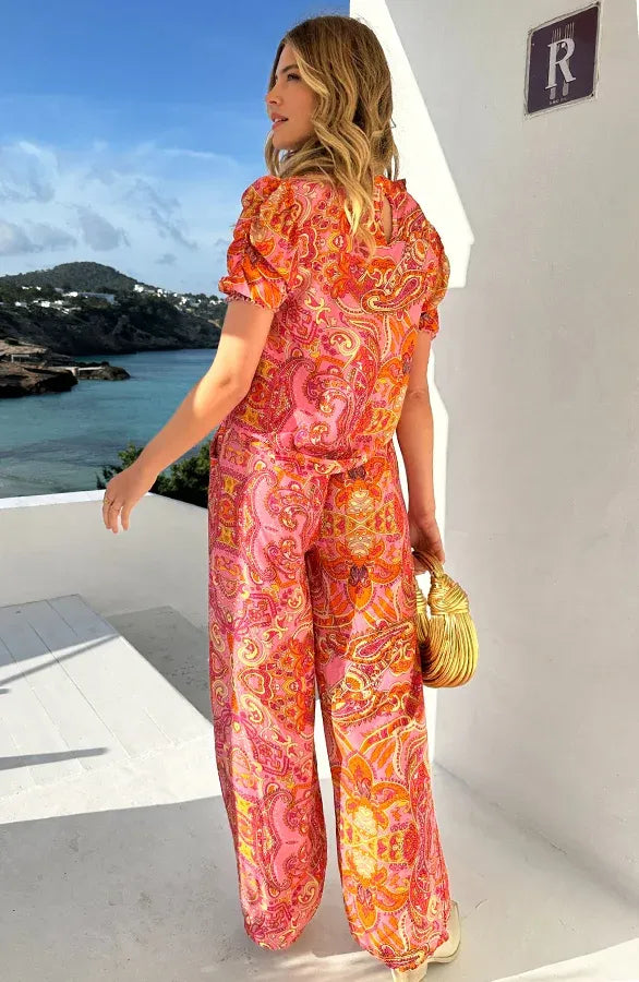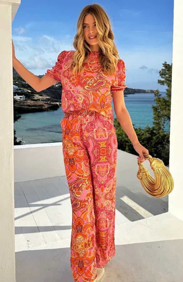 Das Bridget | Modisches Set bestehend aus gerafftem Oberteil und weitem Schnitt kombiniert trendbewusste Details mit eleganter Vielseitigkeit. Perfekt für entspannte City-Tage, stilvolle Freizeit-Outfits oder moderne Bürolooks – dieses Set verleiht dir einen lässig-eleganten Auftritt mit Komfort.
