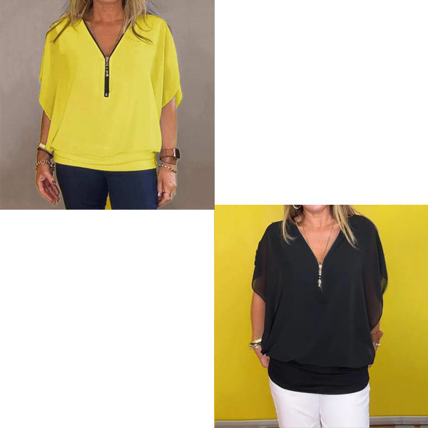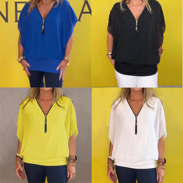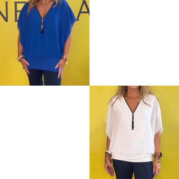 Das Choraline | Luftiges Reißverschluss-Top kombiniert stilvolle Leichtigkeit mit funktionalen Details. Der luftige Stoff sorgt für ein angenehmes Tragegefühl, während der Reißverschluss für einen modernen Akzent und variable Styling-Möglichkeiten sorgt – perfekt für den Alltag, das Büro oder entspannte Freizeitlooks.