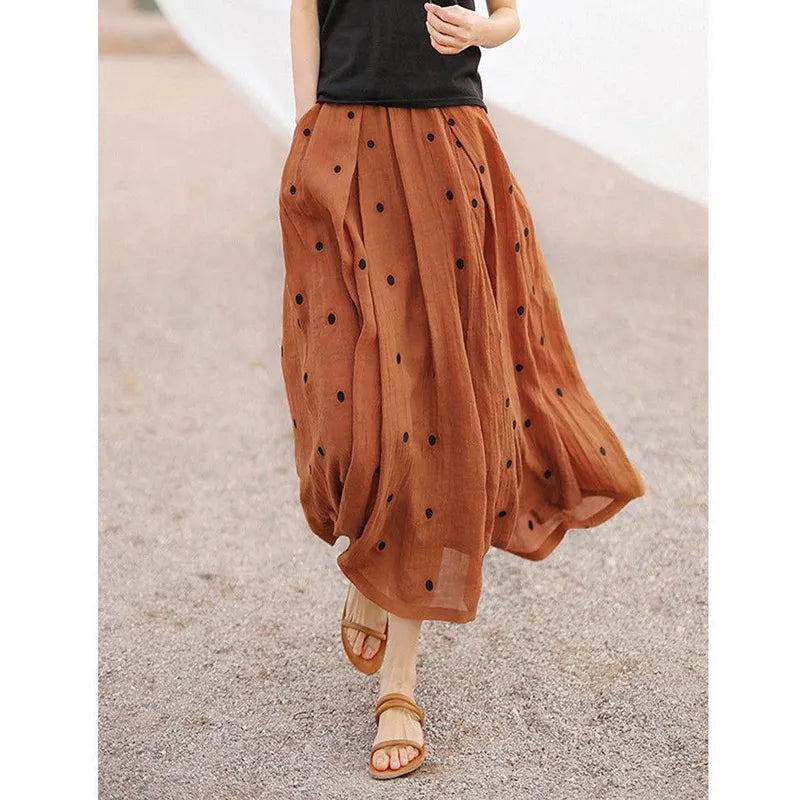 Der Faye | Polka-Dot Rock mit Taschen mit Taschen vereint femininen Charme mit alltagstauglichem Komfort. Mit seinem klassischen Punktmuster und der schmeichelhaften Passform ist er ein echtes Must-have für stilbewusste Frauen.