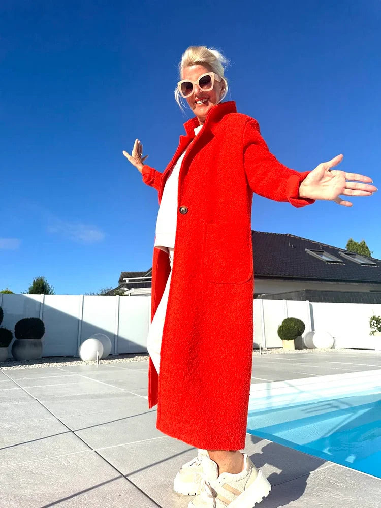 Der Gelina | Stehkragen-Mantel mit Taschen vereint klassisches Design mit praktischem Komfort. Perfekt für Herbst- und Wintertage, Büro oder Freizeit – stilvoll, warm und vielseitig.