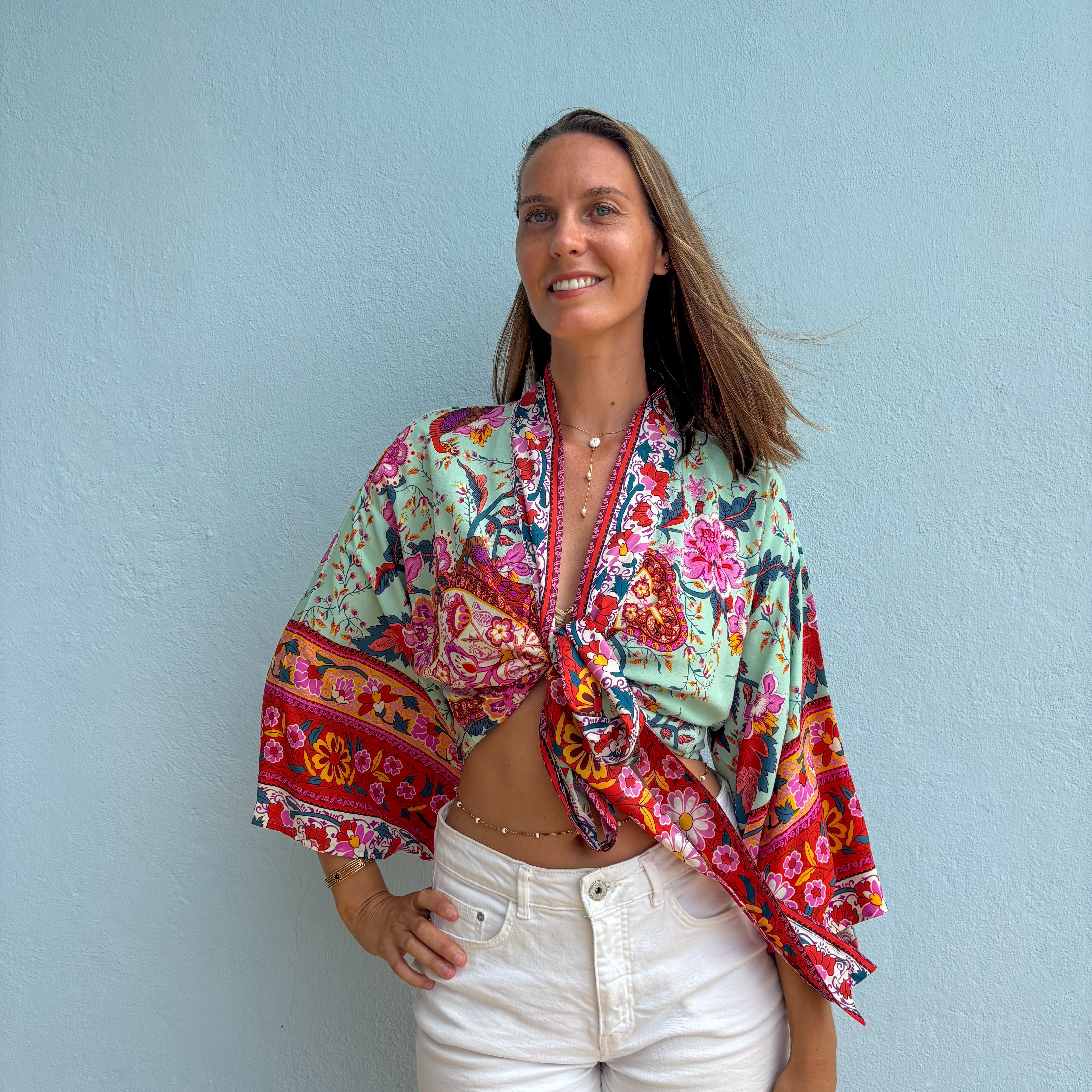 Boho-Glückseligkeit: Das Giulia Kimono-Top mit Blumenmuster