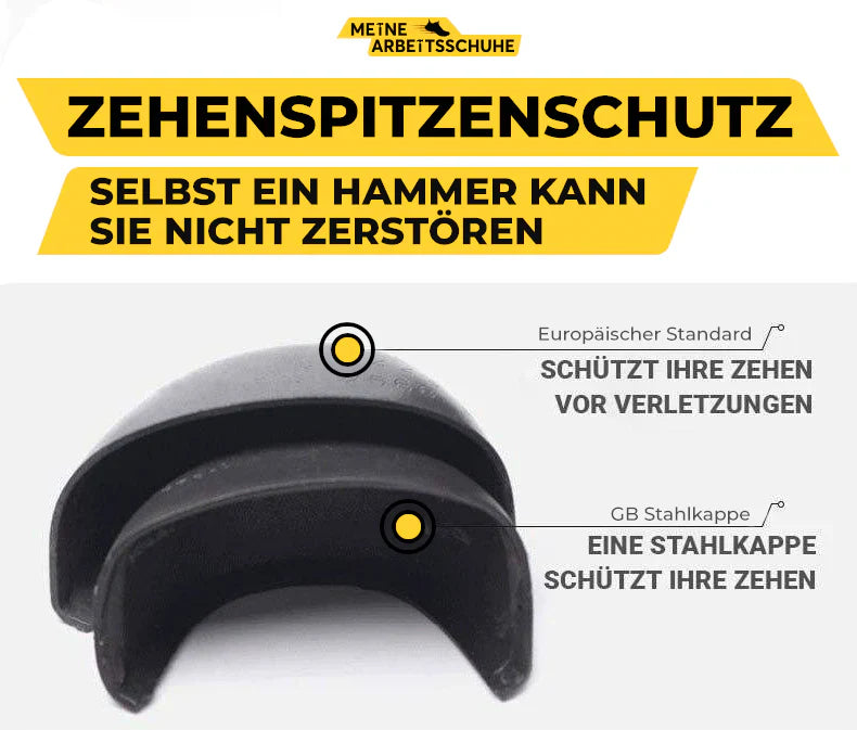 ✔ Verstärkte Zehenkappe – Schützt vor Stößen, schweren Gegenständen und Druck.