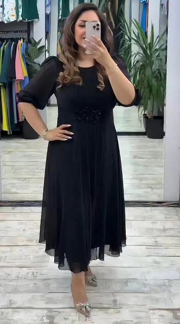 Verleihen Sie Ihrem Auftritt eine luxuriöse Note mit dem Jiny | Eleganten plissierten Midikleid! Dieses atemberaubende Midikleid ist die perfekte Wahl für jede besondere Gelegenheit, von eleganten Abendveranstaltungen bis hin zu Hochzeiten. Das Kleid besticht durch seine makellosen, feinen Plissees, die bei jeder Bewegung wunderschön fließen und eine anmutige Silhouette schaffen. Kombiniert mit den eleganten Ärmeln und der raffinierten Taillenbetonung ist Jiny ein Symbol für zeitlose Eleganz und femininen Chic.