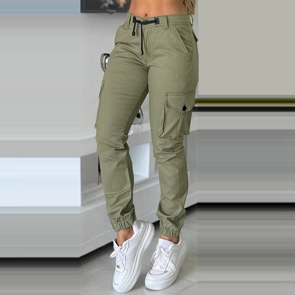 Die Lilia | Grüne Cargohose mit Kordelzug am Bund vereint entspannte Passform mit praktischen Details. Perfekt für den Alltag, Outdoor-Aktivitäten oder entspannte Wochenendlooks – diese Cargohose bietet sowohl Stil als auch Funktionalität.