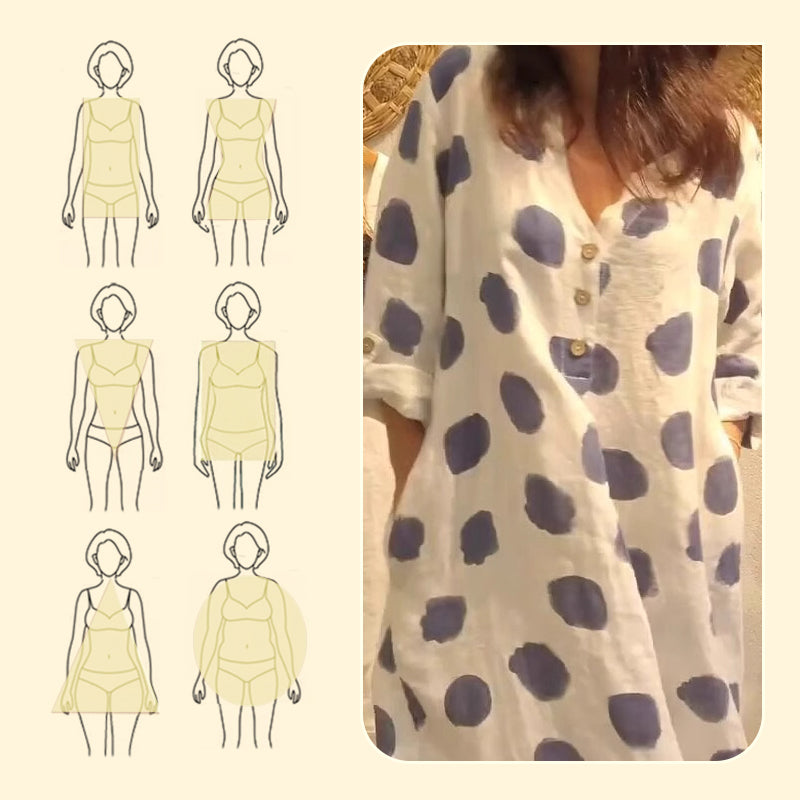 Das Loren | Gepunktetes, lockeres Midikleid kombiniert einen charmanten Punktedruck mit einem entspannten, modernen Schnitt. Ideal für Sommertage, Casual-Events oder Wochenend-Ausflüge, verleiht dieses Kleid deinem Look eine frische und feminine Note.