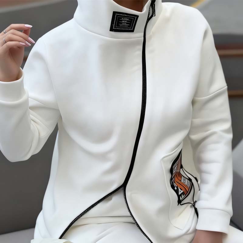 Das Mariss | Freizeit-Set mit Stehkragenjacke und Hose kombiniert lässige Funktionalität mit modernem Stil. Ideal für Reisen, Freizeit oder entspannte Tage – dieses Set bietet Bewegungsfreiheit, Komfort und einen gepflegten Look.