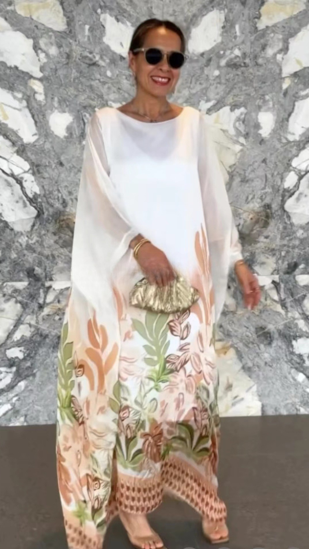 Das Mathilda | Stylische, lockere Kleid mit Rundhals und langen Ärmeln für den Sommer vereint Komfort und Stil in einem. Mit seinem lockeren Schnitt und den langen Ärmeln bietet es eine perfekte Balance zwischen entspannter Eleganz und sommerlicher Leichtigkeit. Ideal für den täglichen Gebrauch, Treffen im Freien oder entspannte Sommerabende.