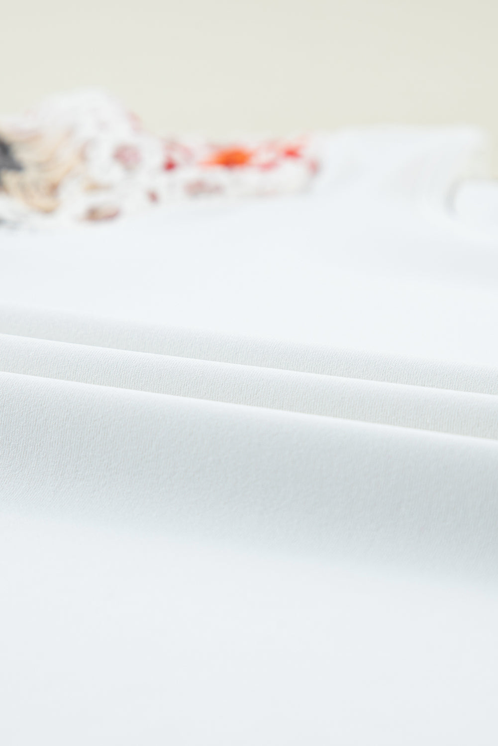 Handgefertigter Häkel-Look: Detailreiche Blumenmuster für eine feminine, kunstvolle Optik.