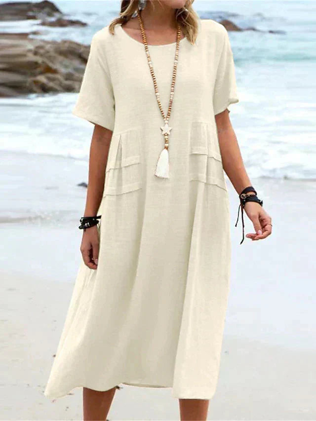Setze auf natürliche Eleganz mit dem Swift | Midikleid aus Baumwolle und Leinen für Frauen. Jetzt bestellen und die Leichtigkeit des Sommers genießen!