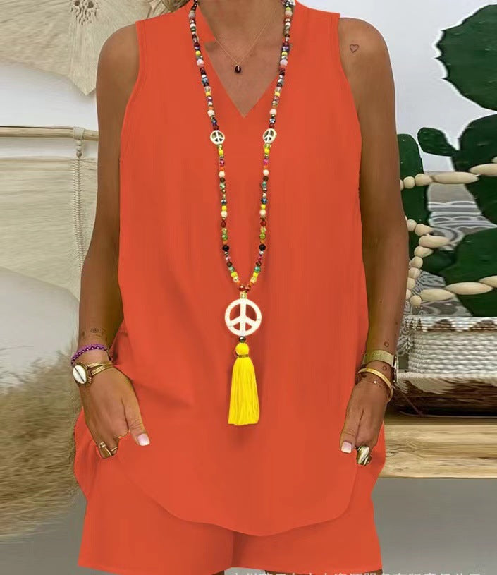 Das Tessa | Minimalistische Set mit ärmellosem Design vereint zeitlose Schlichtheit mit einer modernen Passform. Das hochwertige Material sorgt für maximalen Komfort, während das ärmellose Design dem Look eine stilvolle Leichtigkeit verleiht – perfekt für Freizeit, Büro oder elegante Casual-Outfits.