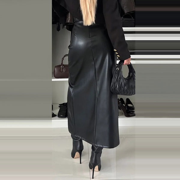 Der Zamarah | Kunstlederrock mit Hoher Taille & Schlitz vereint trendiges Design mit schmeichelhafter Passform. Perfekt für Büro, Freizeit oder elegante Abende – stylisch, feminin und vielseitig kombinierbar.